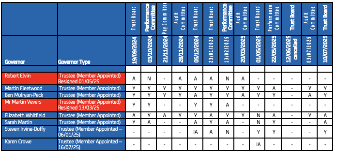 | Martin Vevers (Resigned 13.03.25) | TRUSTEE | Executive Headteacher - Larus Trust | Member of ACSL |